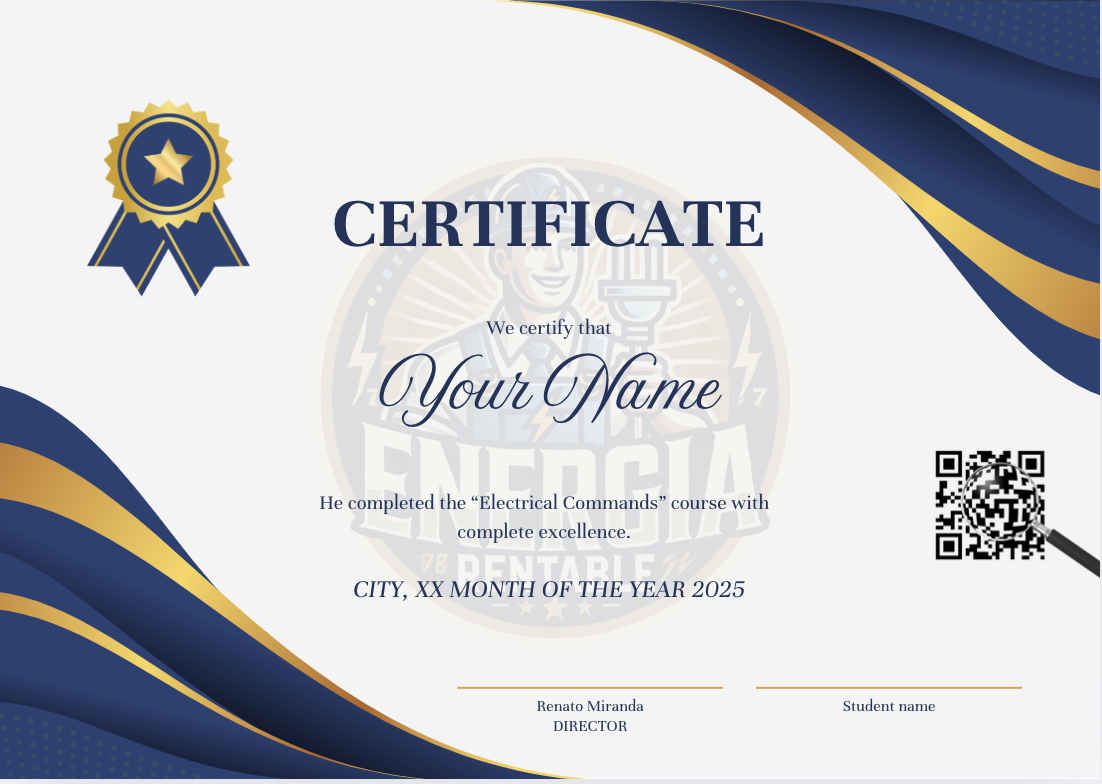 Upon completing the guide, you’ll receive a digital certificate issued by a recognized company in the electrical industry.